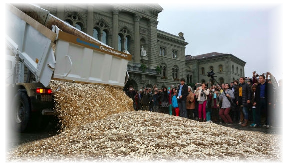 Und hier die spektakuläre Aktion der Generation Grundeinkommen zur Einreichung der Eidgenössischen Volksinitiative für ein bedingungsloses Grundeinkommen am 4. Oktober 2013 in Bern. Ein Tag auf dem Bundesplatz. Bilder, die um die Welt gingen. Eine filmische Zusammenfassung von Enno Schmidt.